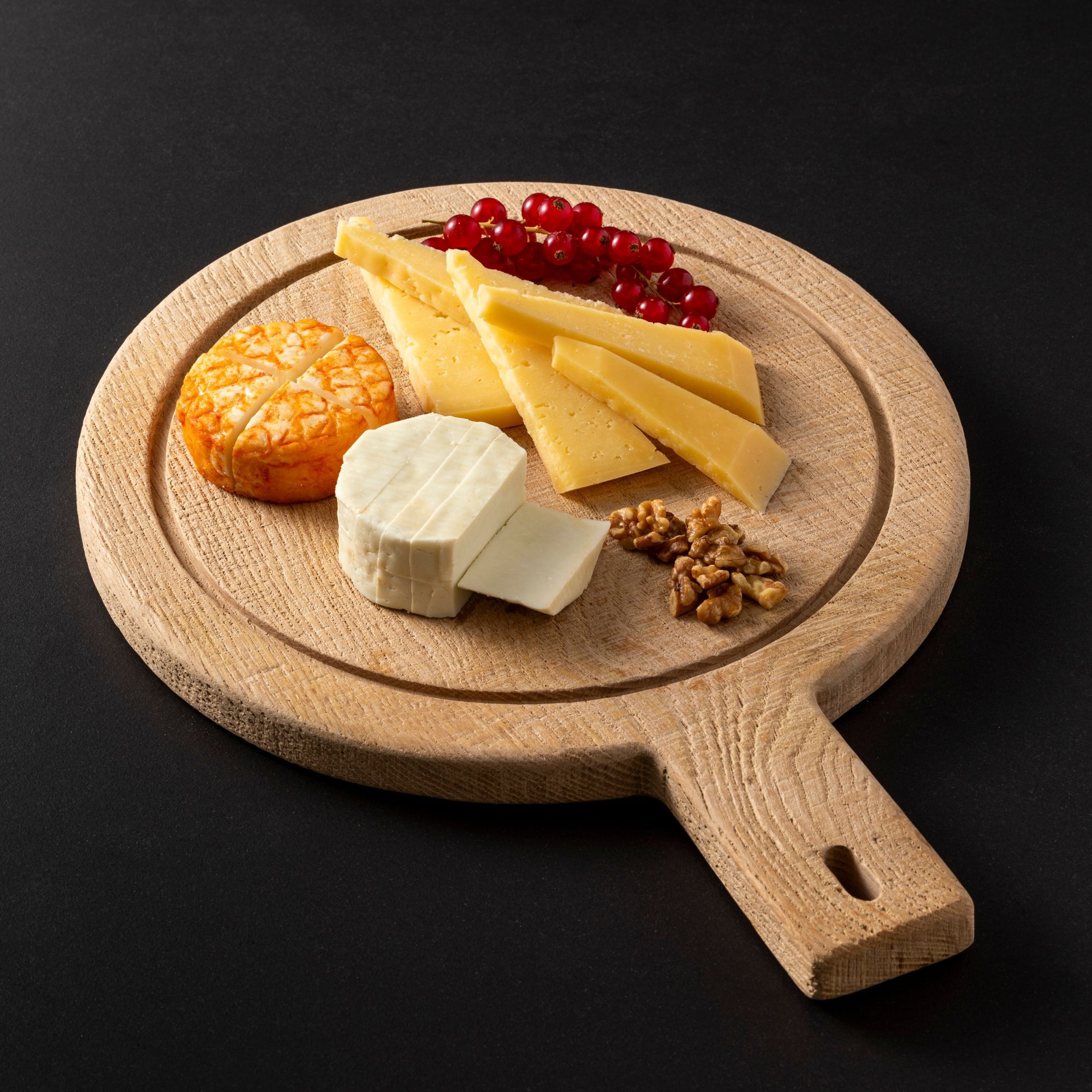 Oak wood round cutting/serving board with handle